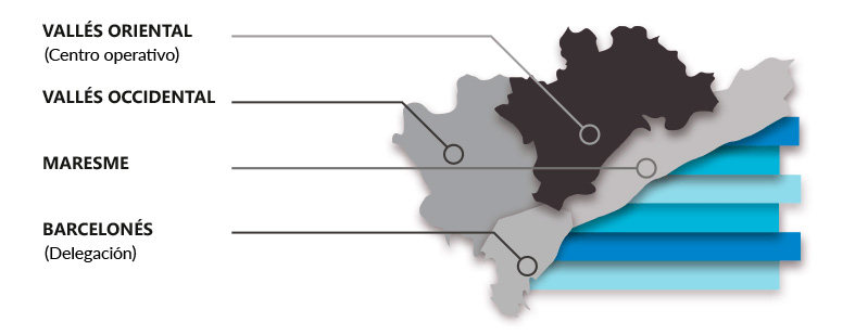 Somos referentes en diferentes comarcas, con oficinas centrales en Les Franqueses del Vallès y delegación comercial en Barcelona.