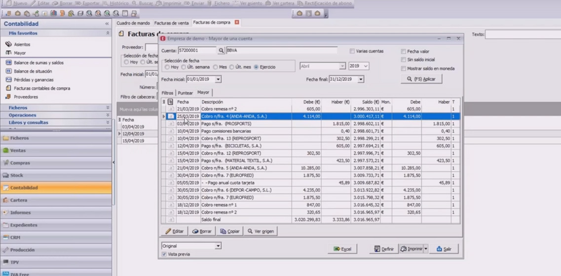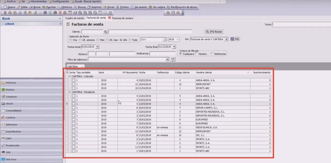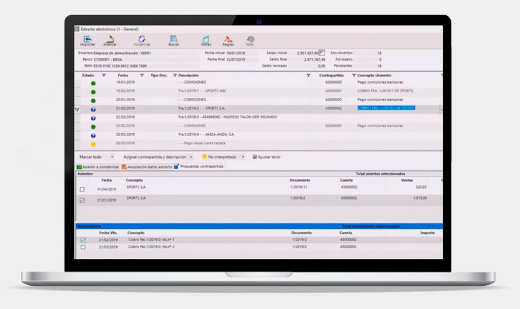 Integrada con a3ERP, permite gestionar de forma ágil y sencilla cobros y pagos en cartera según la información de los extractos, así como punteo de los movimientos realizados.