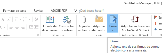 En la pestaña mensaje, en el grupo incluir, seleccionamos firma firma