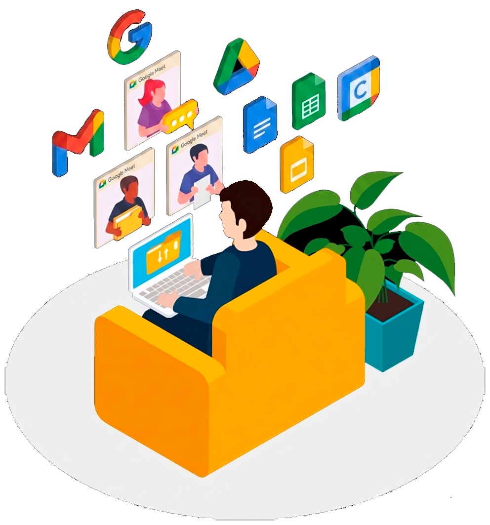 Google Workspace es un conjunto de herramientas de correo, colaboración y productividad en la nube, diseñado para trabajar en equipo de forma simple y eficiente.