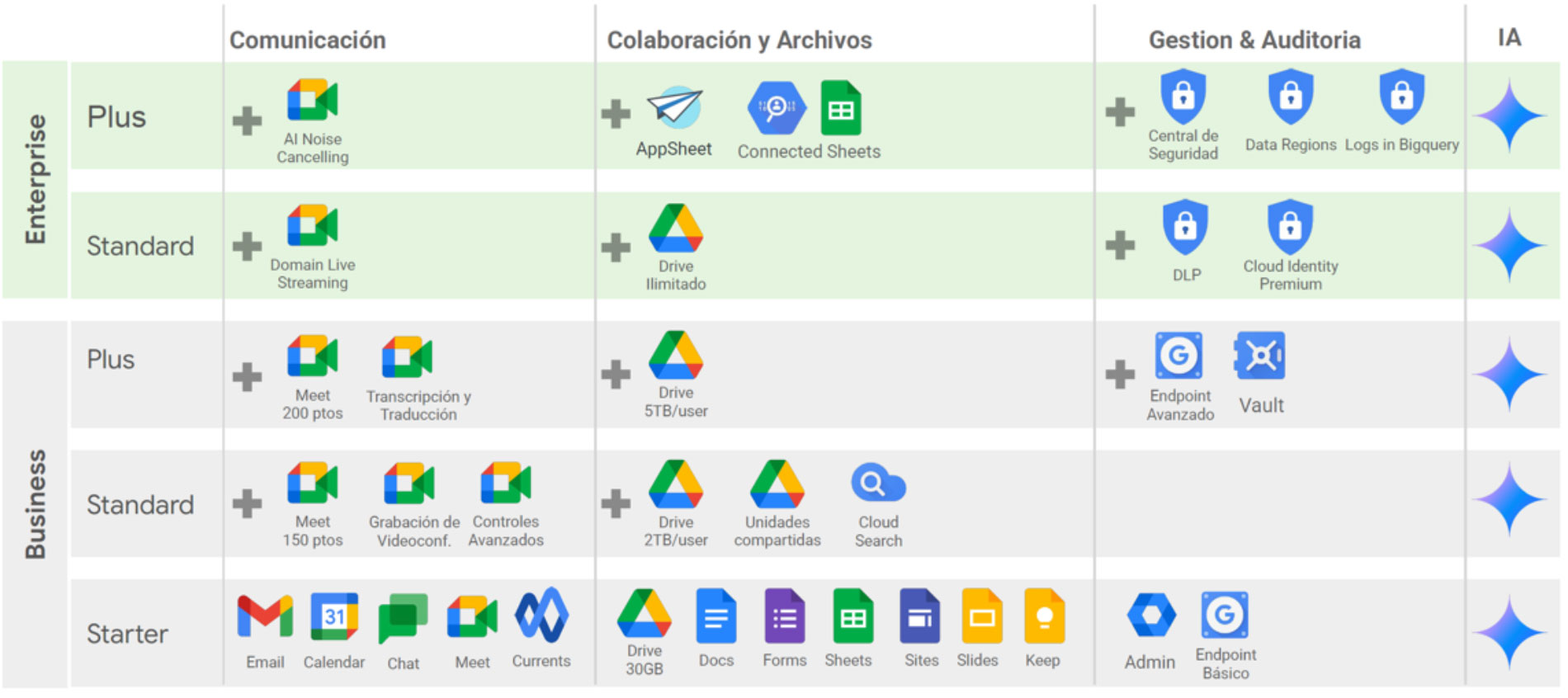 • Chat interno con Google Chat para equipos y proyectos.