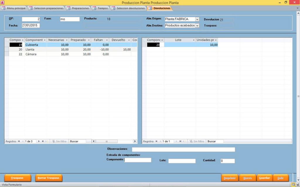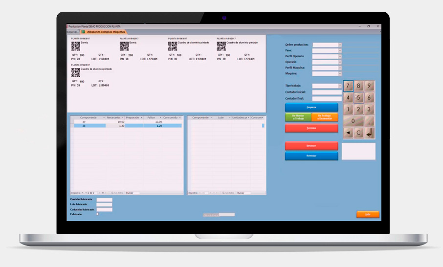 Asignación de operarios y máquinas en todas las fases del proceso de producción y control total del consumo de componentes y la fabricación de productos para incrementar la productividad.