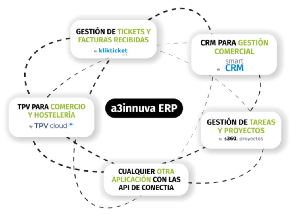 O bien conecta sin grandes desarrollos tu a3innuva ERP con cualquier otra aplicación gracias a las API de Conectia.