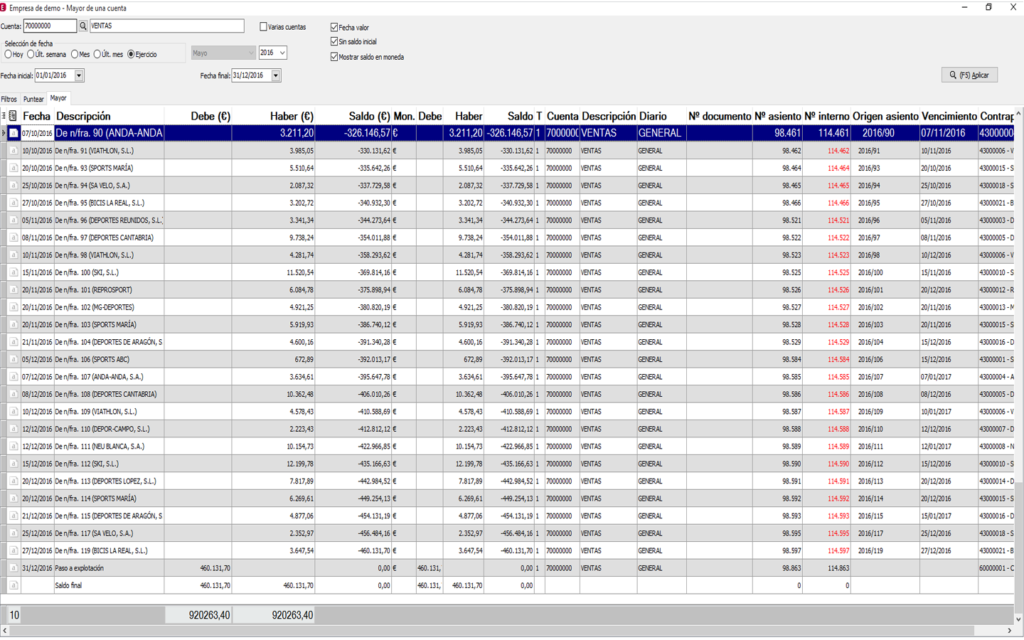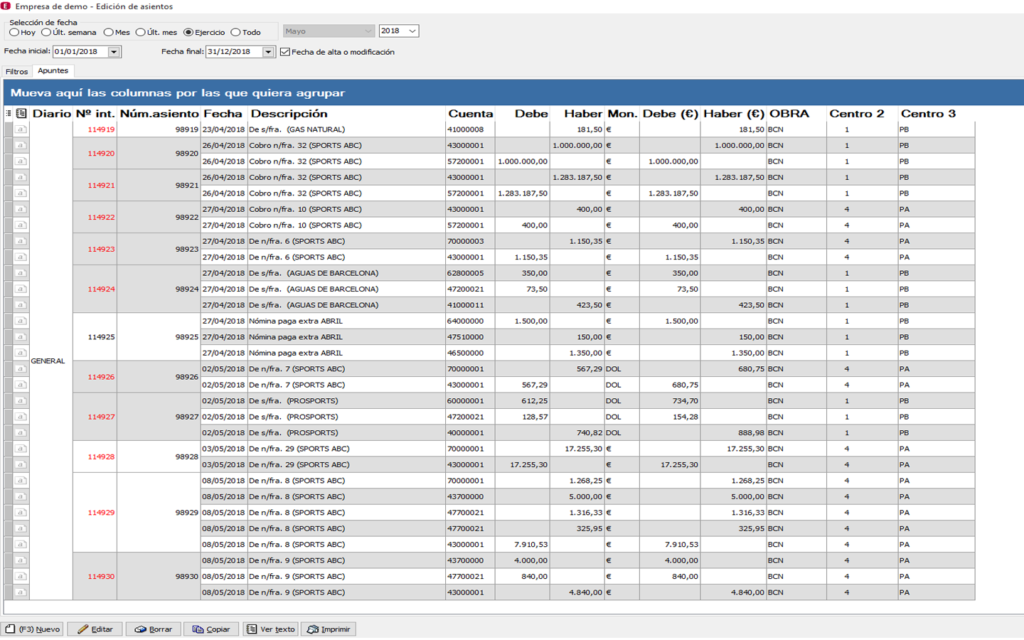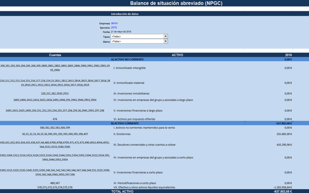Obtén al momento una visión clara del estado contable de tu negocio con un cuadro de mandos totalmente personalizable con los indicadores clave variables. Introduce, consulta y edita asientos contables de forma ágil y genera balances u otros informes al momento.