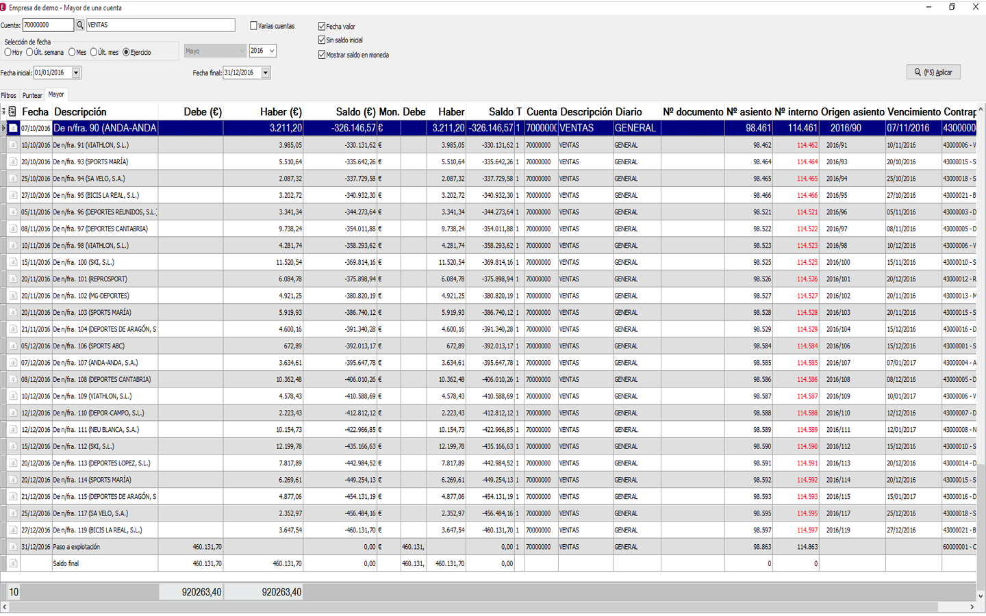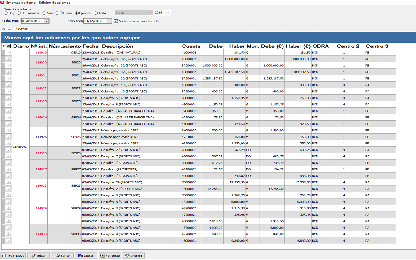 Obtén al momento una visión clara del estado contable de tu negocio con un cuadro de mandos totalmente personalizable con los indicadores clave variables. Introduce, consulta y edita asientos contables de forma ágil y genera balances u otros informes al momento.