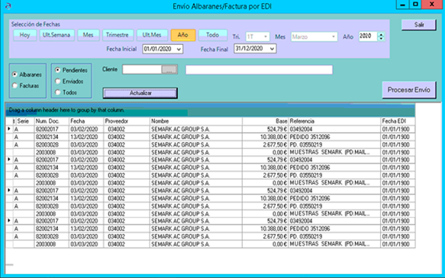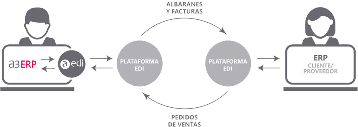 Genera y envia archivos EDI, a partir de documentos a3ERP tales como albaranes y facturas de venta. Estos documentos arrastran la misma información que los documentos de origen (pedidos).